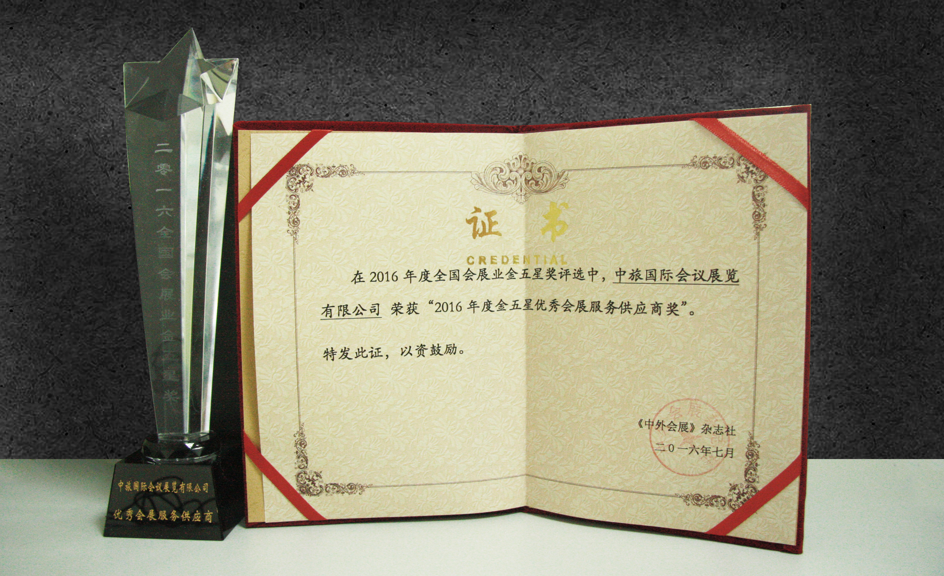圖5:中旅會(huì)展榮獲“2016年優(yōu)秀會(huì)展服務(wù)供應(yīng)商獎(jiǎng)”