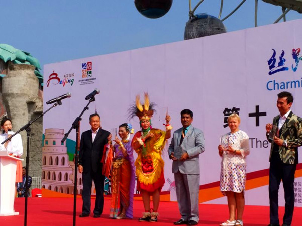 閉幕式在石景山游樂園全新摩天輪所在地摩天輪廣場下舉行。現場,北京市旅游發展委員會領導向參加本次北京國際旅游節的表演團體代表頒發了紀念獎杯,感謝各國藝術家遠道而來,為促進文化交流、推動北京旅游產業的發展所做出的貢獻。