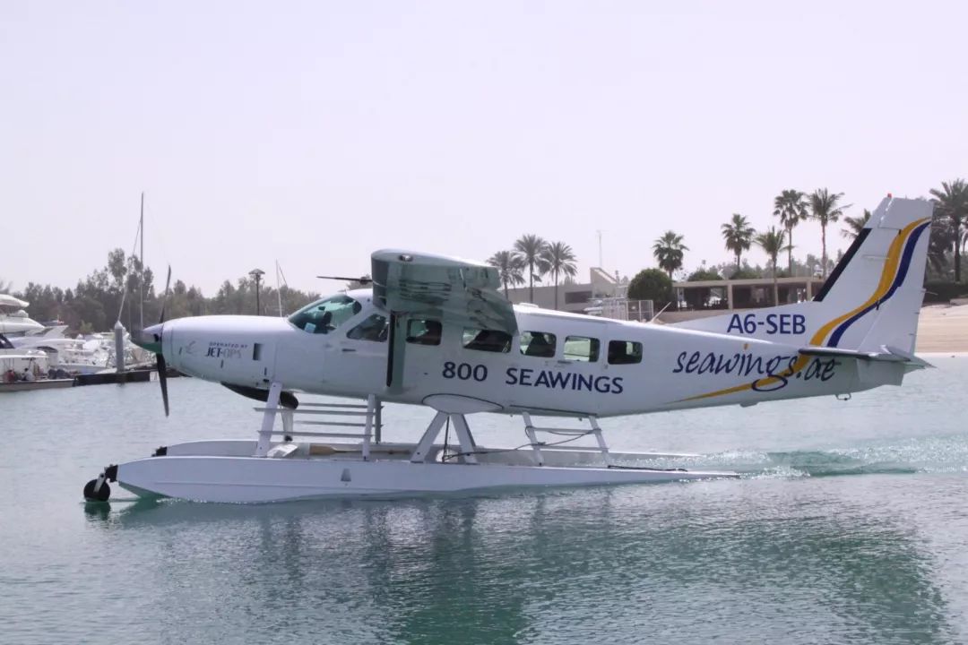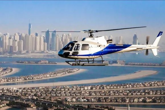 從水上起飛,在1500英尺高空俯瞰全城,包括棕櫚島、帆船酒店、哈利法塔、世界群島及迪拜灣等;
