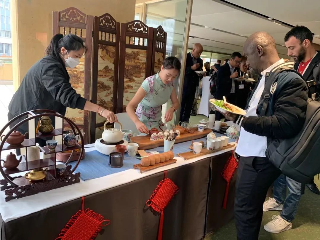 在《濕地公約》締約方大會日內(nèi)瓦分會場現(xiàn)場,豐富多彩的展臺展示,圖文并貌的描繪出中國、湖北武漢濕地資源和成就,從多個維度為與會者描繪了一個中國視角的濕地畫卷;盛大隆重的招待會,以熱情誠摯的姿態(tài),彰顯了不同凡響的中國風(fēng)采;獨(dú)具特色的中國美食展,通過地道的中國茶藝表演及烤鴨、餃子、熱干面等傳統(tǒng)中國美食,將博大精深的中華文化通過色香味俱全的一道道食物,鐫刻在與會者的記憶中。
