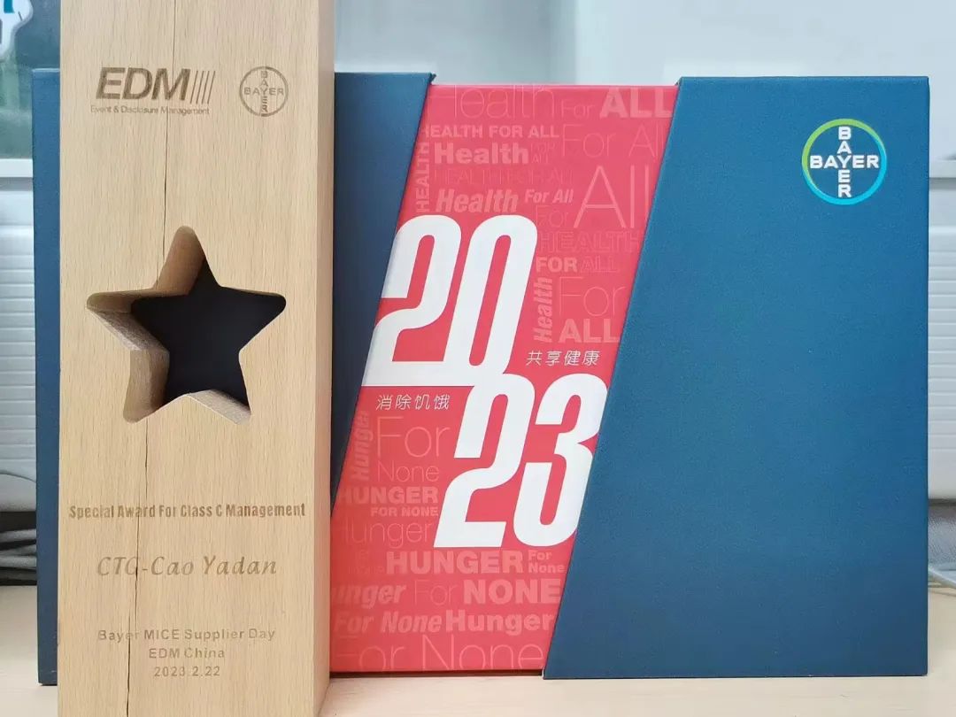 中旅會展憑借在西區(qū)小會項目中的出色表現(xiàn)得到了拜耳的高度評價,在此次供應(yīng)商大會上榮獲了“Special Award For Class C Management”小會項目優(yōu)秀管理獎。中旅會展服務(wù)團隊將始終與客戶并肩前行,堅持“態(tài)度不變、決心不改、合規(guī)不松”的服務(wù)原則,精益求精,努力與客戶繼續(xù)攜手,共同成長、共創(chuàng)輝煌。